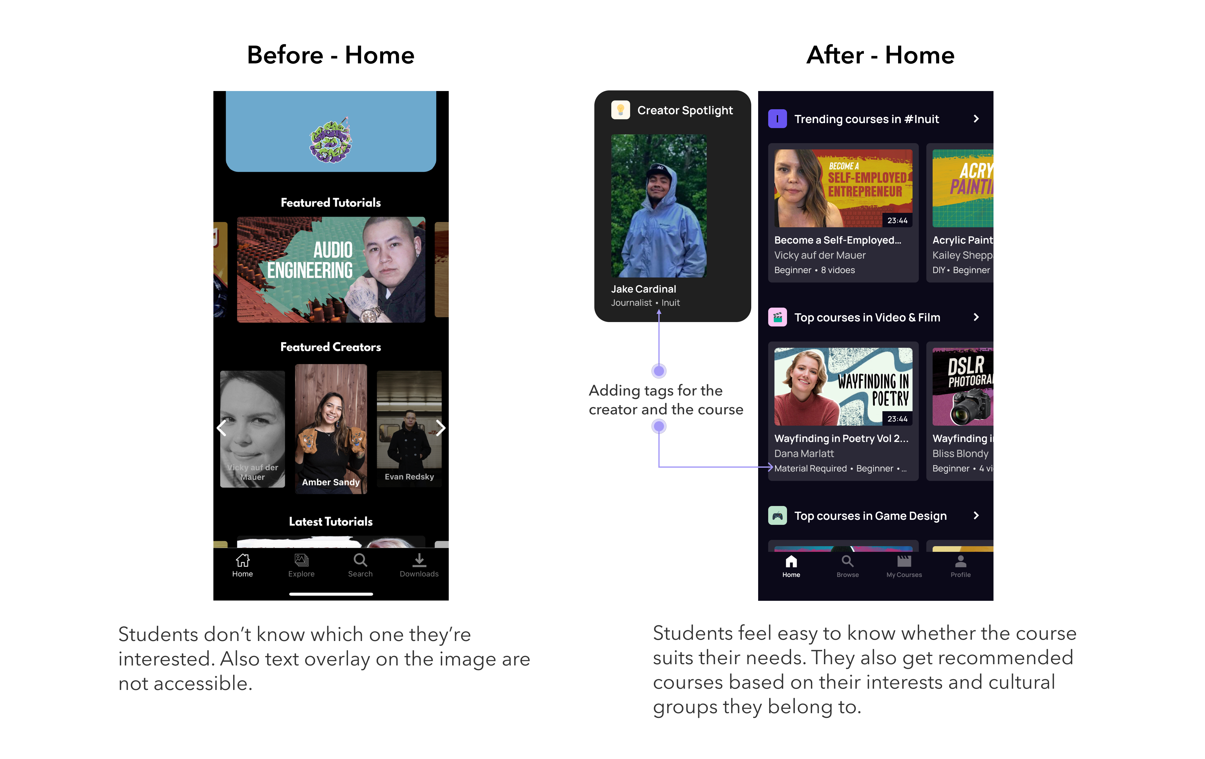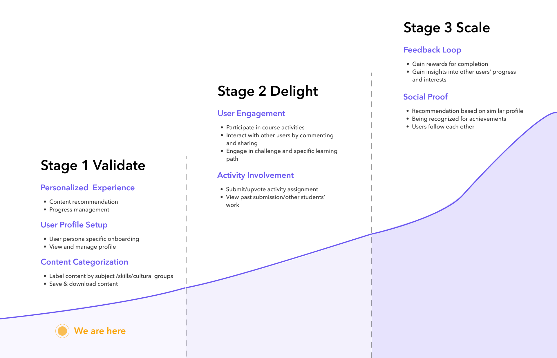 Based on the main problem areas we identified for Stage 1 design, we focused on optimizing discovery of content, providing personalized recommendations and helping students easily make decisions.
