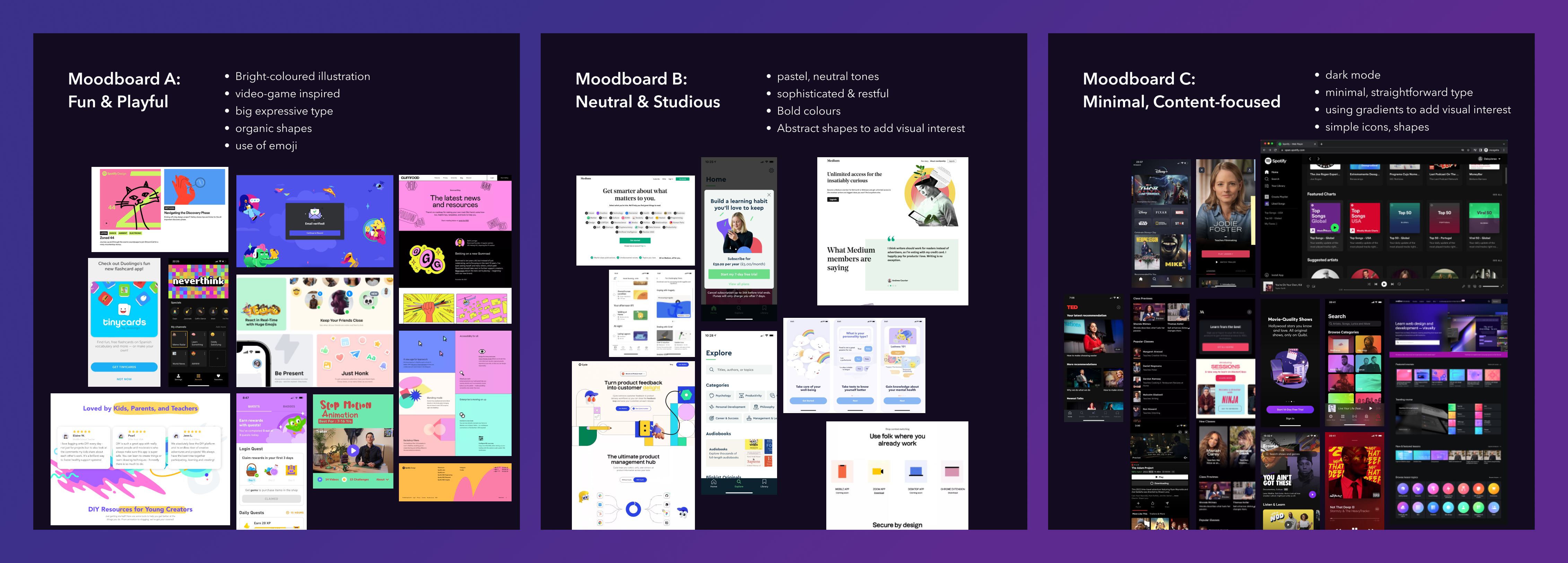While ideating medium fidelity flows, I also started looking at other competitors' products and thinking about which UI style we wanted to apply for our app.